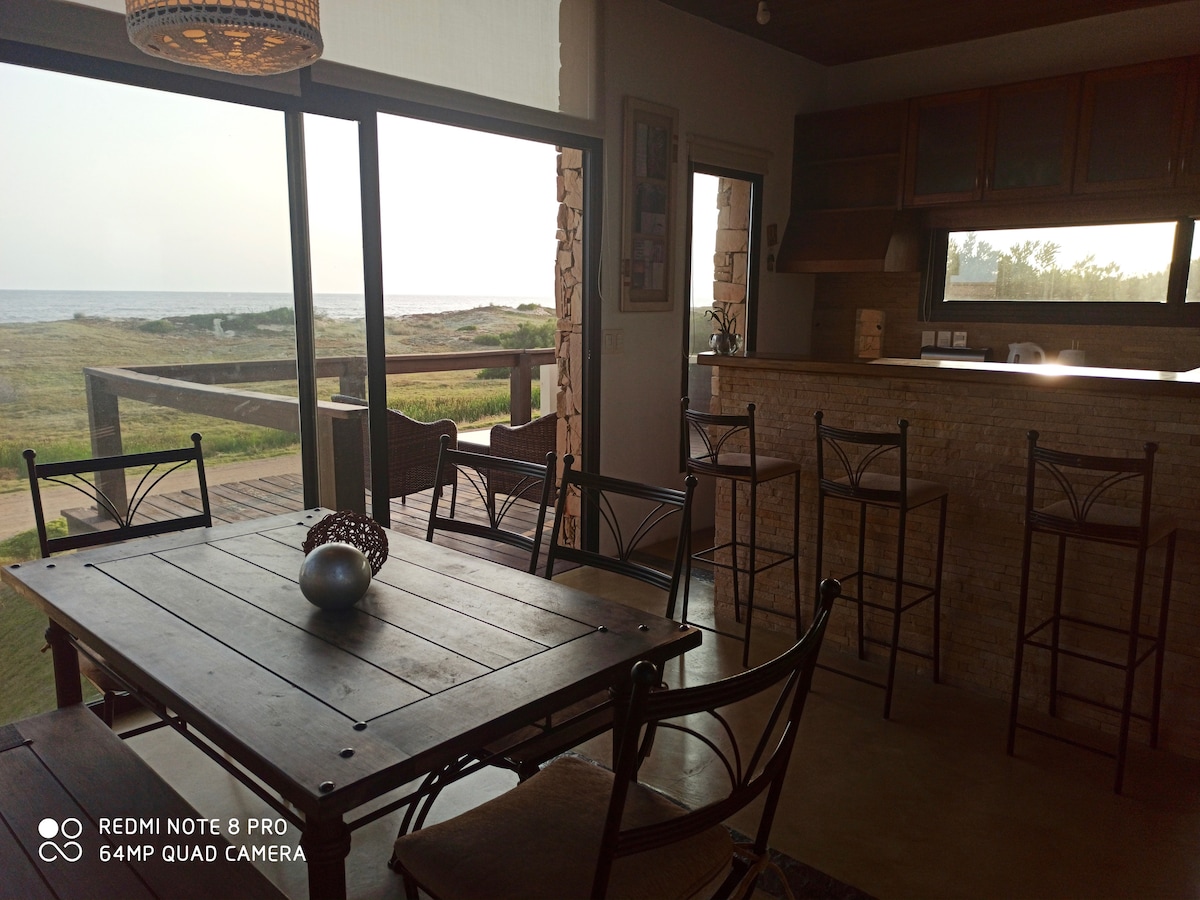 Designer beachfront cabin between Piriápolis and Punta del Este. Wake up to the sound of the ocean and step straight onto the sand. Perfect for a romantic or adventure escape. Cozy wood-burning stove, bonfire under the stars, and a fully equipped kitchen. Includes linens, towels, and amenities. A peaceful seaside retreat to relax and reconnect with nature. Near the cabin there's an abandoned complex, but there's a caretaker living there and it's very safe.