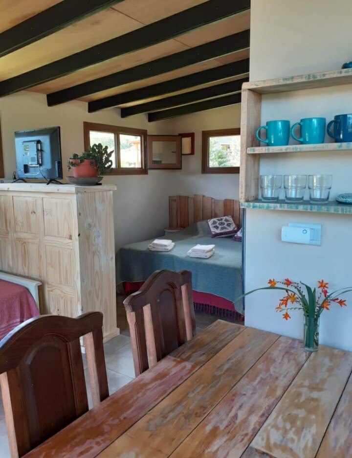 Our "Cabin for 3" is a beautiful house equipped for two or three people. It is a very spacious studio, comfortably equipped and furnished for two or three people. Its windows open an incredible view towards the mountain range and the natural environment that surrounds it invites you to disconnect from everything and rest, as well as to be able to concentrate and work, depending on the reason for your trip.