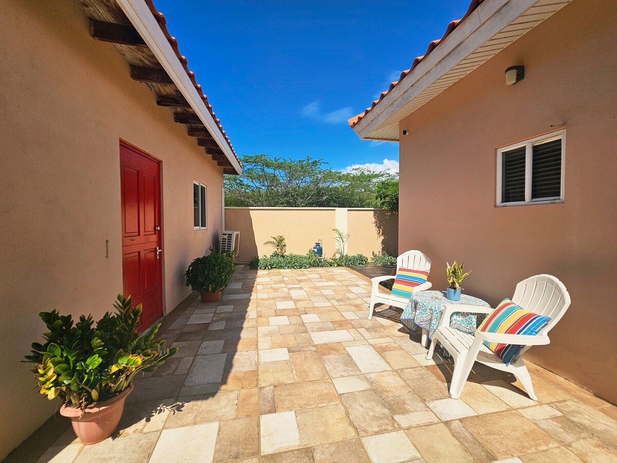 Cozy studio-apartment with a designated parking space, private entrance and front patio surrounded by nature in a tranquil neighborhood. In 15 minute walking distance to Alto Vista's chapel, a historic and peaceful area located at the North coast of the island. Close driving distance from Eagle Beach, Arashi Beach, Palm Beach, and Boca Catalina. The studio-apartment has its own kitchen suppllies, beach chairs, beach towels, cooler and snorkeling equipments.