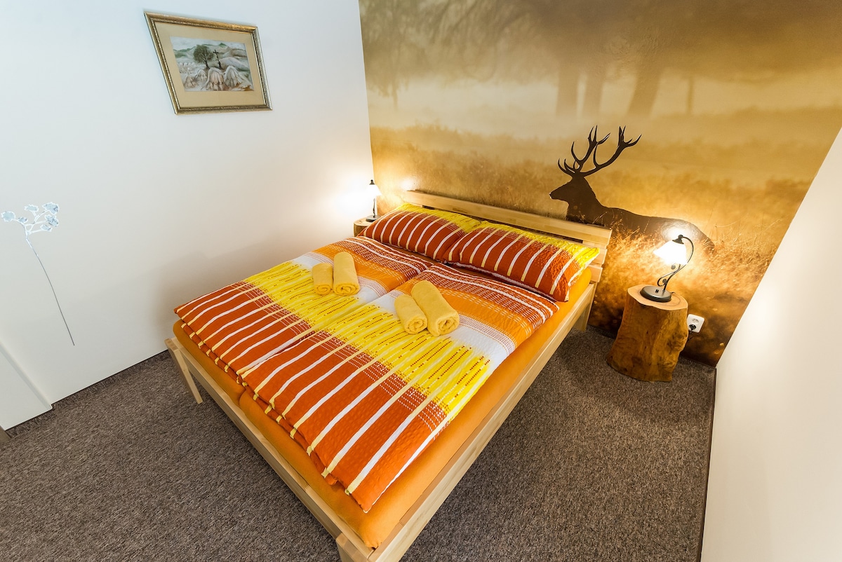 We are a family run guesthouse in walkable distance to the center of Cesky Krumlov. We offer 4 double rooms and 1 quadrupple room each with own entrance from outdoor space, bathroom. One double and a quadrupple room have got own kitchenette with basic equipment. We also offer sauna, infrared sauna, massages, solarium for an extra fee.