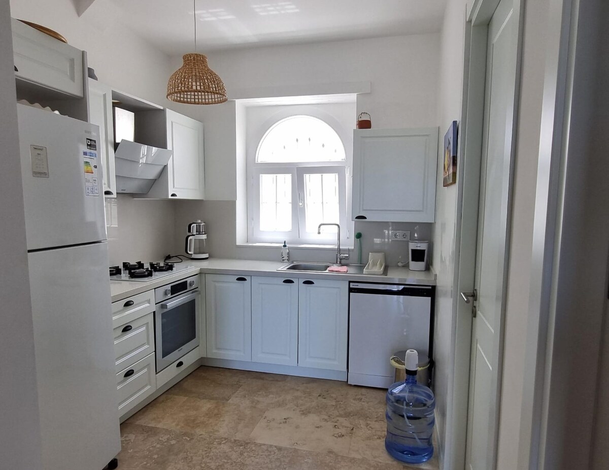Sunset No:23 Alaçati is one of the few ground-floor houses in Alaçati. Thanks to its special location, the house is like a real oasis: in the middle of the village and yet far away from the noise and the hustle and bustle. As soon as you close the door behind you, peace, and idyll reign. It is an original stone house built from solid stone, hence the thick walls (approx. 60 cm) All trendy restaurants, cafes, and boutiques are within a few minutes' walking distance.
