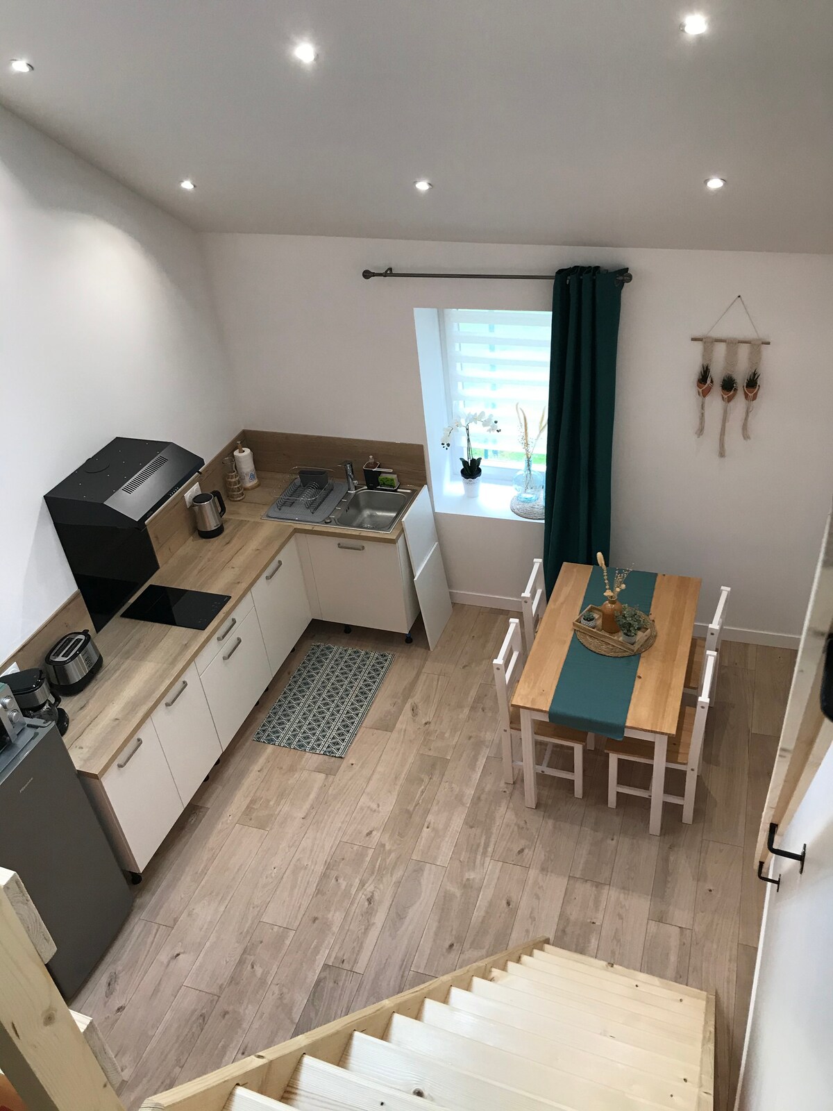 Welcome to the Pigeonnier de Malpas in the heart of the Loue Valley You have one bedroom upstairs, a living room/kitchenette and a bathroom A fenced garden is at your disposal but also access to the outdoors of the property if you like the company of dogs, cats, horses and chickens! You also have access to a shared pool (opening according to schedules and seasons) This attic was completely renovated in 2023 while maintaining all its authenticity