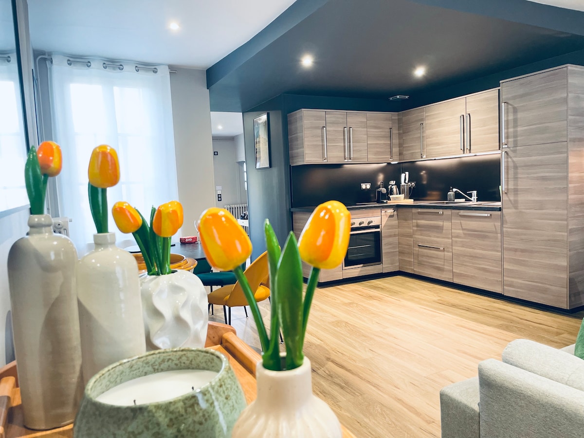 Gîte situé dans la petite ville de Chablis. Vous séjournerez dans une ambiance moderne. Logement composé d'une grande pièce à vivre avec cuisine ouverte entièrement équipée, une chambre avec lit double, une seconde chambre avec un lit double et une salle d'eau avec douche à l'italienne et wc. Situé à deux pas des restaurants, bars, caveaux de dégustations et nombreux domaines viticoles , il vous sera possible de déambuler à pied dans tout le bourg. Wifi gratuite.
