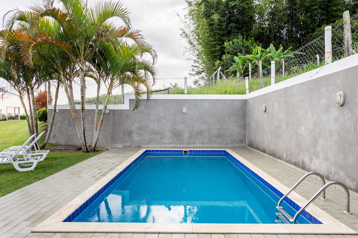 The entire space is PRIVATE to guests. The cleaning fee of 80 reais is not included in the price of the stay. The guest can arrange this service at check-in if desired. Pets will not be allowed to use the pool and must be included in the reservation. 7 m x 3.4 m x 1.4 m pool with shower, waterfall and LEDs. Barbecue, sink and freezer. It has an internal bathroom and an external toilet. Small living room, bedroom and kitchen. Visitors must pay a separate fee, in addition to lodging.