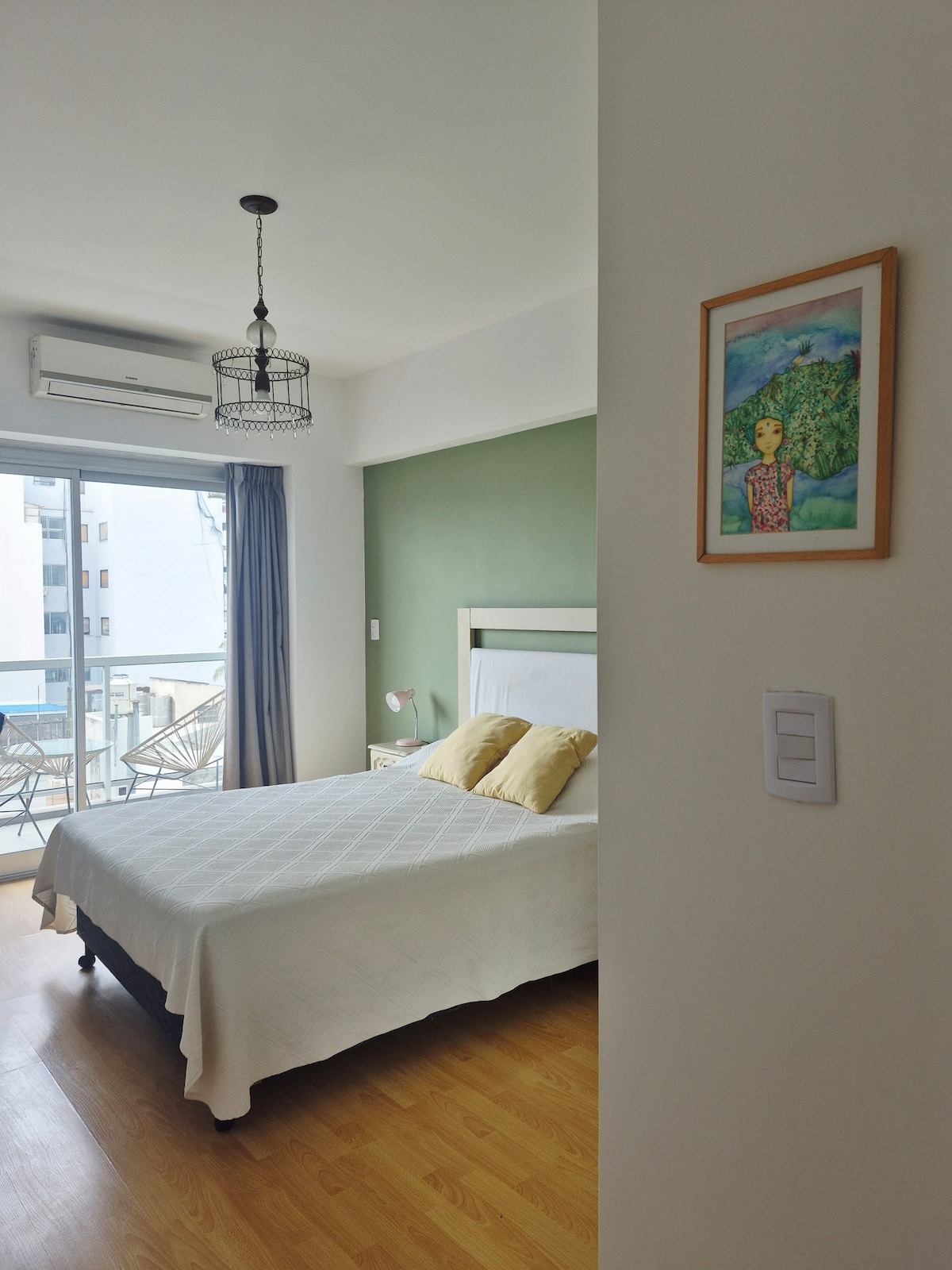 "A place to fall in love with Live in a unique studio in the heart of Palermo Hollywood. Wake up to natural light and enjoy the large balcony surrounded by greenery. Minimalist decor, a comfortable bed with a new mattress, soft sheets and premium towels, and a fully equipped kitchen. High-speed Wi-Fi for video conferencing, a 45" Smart TV. Self check-in, an electrical adapter, games, crafted with your comfort in mind. Also: Top local tips you can’t miss!