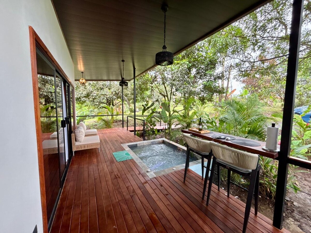 Ideal villa to rest, surrounded by nature. Just 20 minutes from downtown La Fortuna. A magnificent space to celebrate honeymoons and anniversaries, simply to disconnect from stress. With a relaxing hydro-massage jacuzzi and hot water that reaches a MAXIMUM temperature of 40 degrees Celsius, ideal for relaxing away from the hustle and bustle after a day of adventure, you will enjoy a completely private terrace overlooking the garden. * Our accommodation includes breakfast.