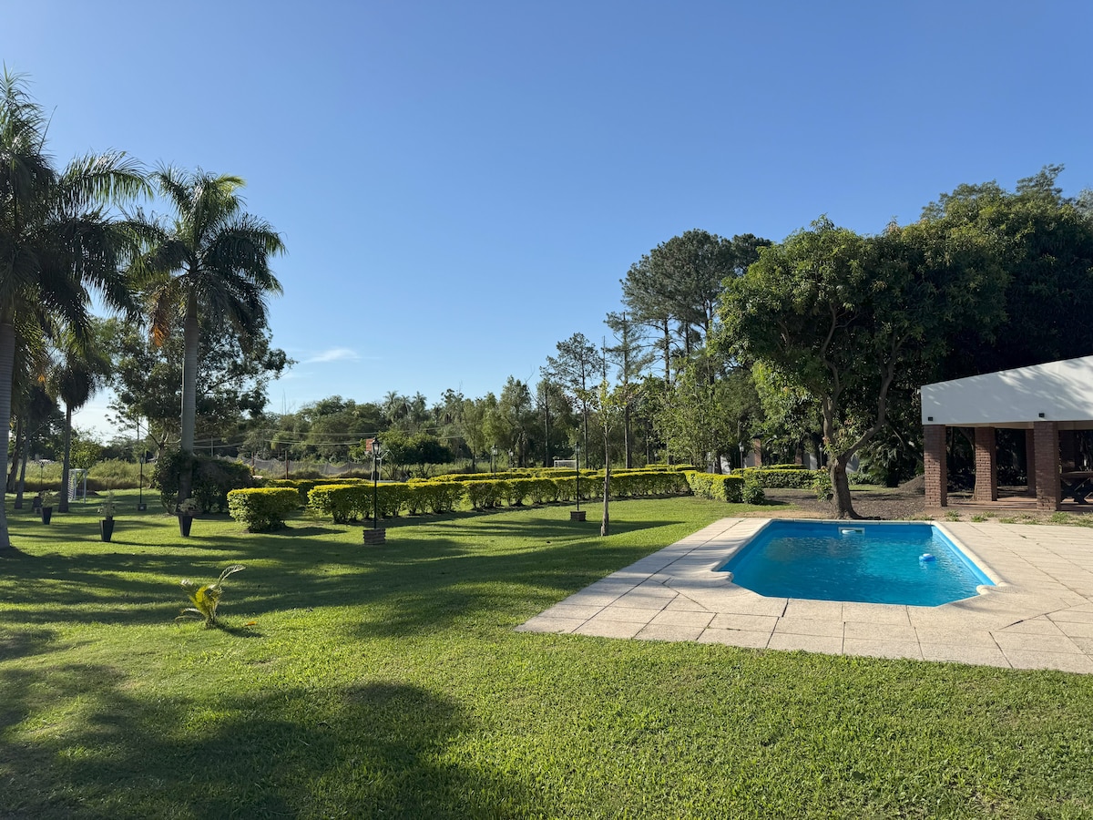 Bienvenidos, este lugar es único! Equipada con TV HD, wifi, aire acond. este espacio es ideal para relajarte y disfrutar. Nuestra parrilla interior es perfecta para asados increibles, piscina de 8x4m y galería exterior, ideal para disfrutar del atardecer. Nuestro parque te permite disfrutar de la naturaleza y poder realizar actividades al aire libre... fútbol, cama elástica, metegol, etc. *NO SE PERMITEN VISITAS *Si se permiten mascotas pequeñas Te esperamos!