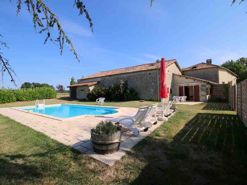 Luxury French gite, just outside the lovely market town of Aubeterre. Newly refurbished to a very high standard, with a large open-plan kitchen/family room , 1 Double & 2 Twin bedrooms (all with private shower room). 10 x 5m HEATED (May and September other times on request at a charge) pool over looking open fields and large patio. Walk into the local village to make use of the local shop for your fresh morning bread and croissants etc, or enjoy rivers, chateau and vineyards further afield.
