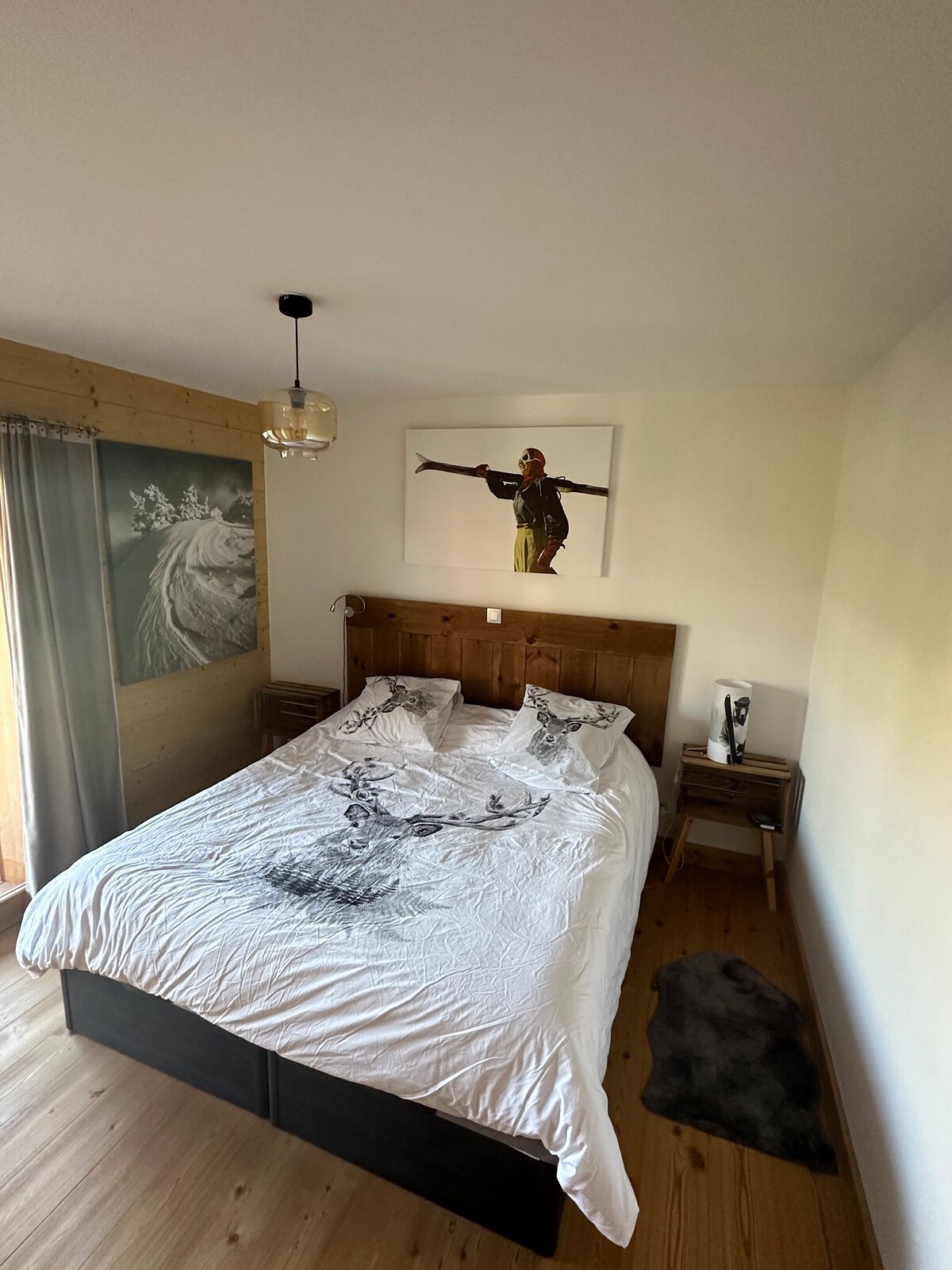 Direct access to French Ski School (ESF) & Ski Area Outdoor heated pool (summer) Washer-dryer in the accommodation Combined microwave Area of 40 m2 (excluding balconies of 4.5 m2 and 9 m2): - Master bedroom (sleeps 2) - A cabin equipped with a bunk bed plus an extra pull-out bed (sleeps 2+1) - Sofa bed in the living room (sleeps 2) * Linens and towels not included: See "Other information to note" ** Outdoor pool open from June 14 to September 14
