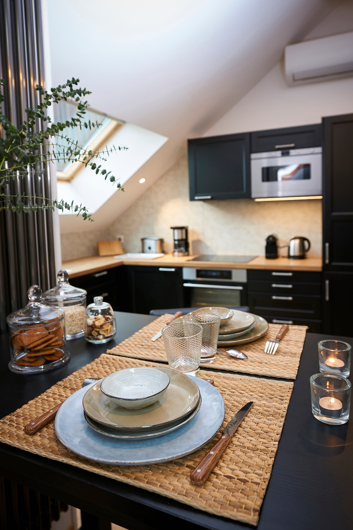 80 m² duplex, air-conditioned, located along the ramparts and the Fausse Rivière. 200 meters from shops and St. Ayoul Church. You arrive via a staircase to a living space dedicated to hosting. 2 large bedrooms, 1 kitchenette, 1 dining area and 1 living room with TV. Bathroom is separate from toilet. > 2 travelers = extra charge Linens and towels are provided. Cleaning included = 2 days Simple breakfast included for 2 days. The swimming pool is closed today, September 21