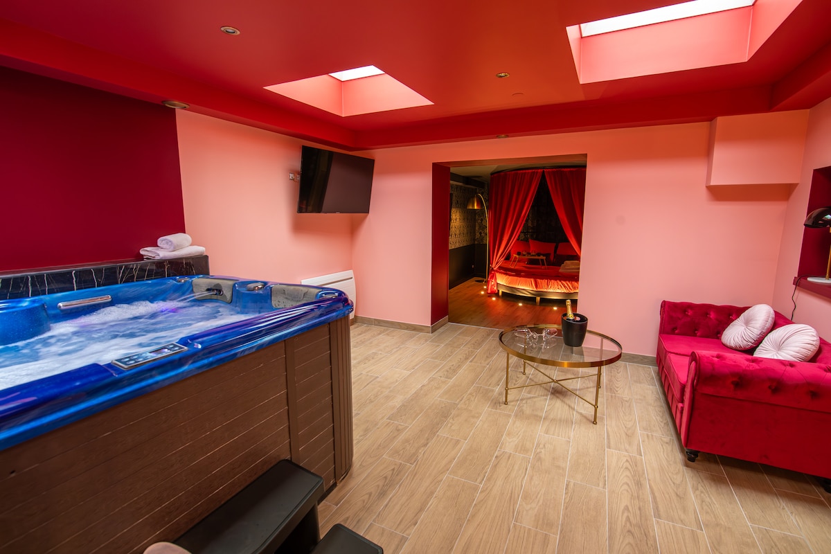 Bienvenue à Parenthèse N° Six, une adresse confidentielle à Reims, pensée pour vous offrir une pause hors du temps Plongez dans une ambiance feutrée et élégante, idéale pour une escapade romantique ou un moment à célébrer. 🛁 Un espace bien-être privatif : profitez d’un grand jacuzzi intérieur rien que pour vous, dans une pièce lumineuse à la décoration raffinée. 🛏️ Un lit rond ultra confortable, entouré de lumières douces et de détails soignés, vous attend pour une nuit inoubliable.