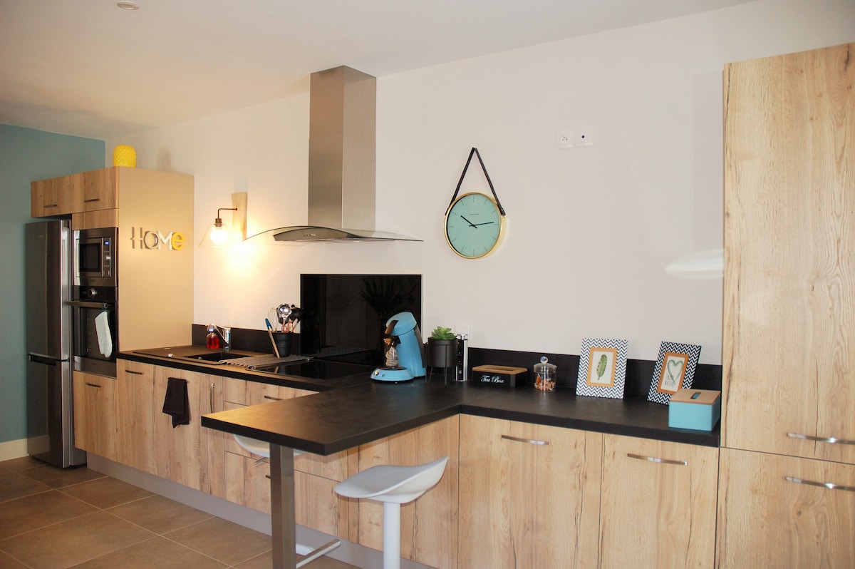 Forget your worries in this spacious and serene space. Bed one meter sixty, single sofa bed, TV with Canal+, equipped kitchen, bathroom with shower, toilet. At your disposal: books, magazines, board games, iron and hair dryer. Small outdoor terrace with barbecue, table and chairs, motorcycle garage. Please let me know if you are missing anything, I will be happy to assist. With supplements: transfers, breakfast.