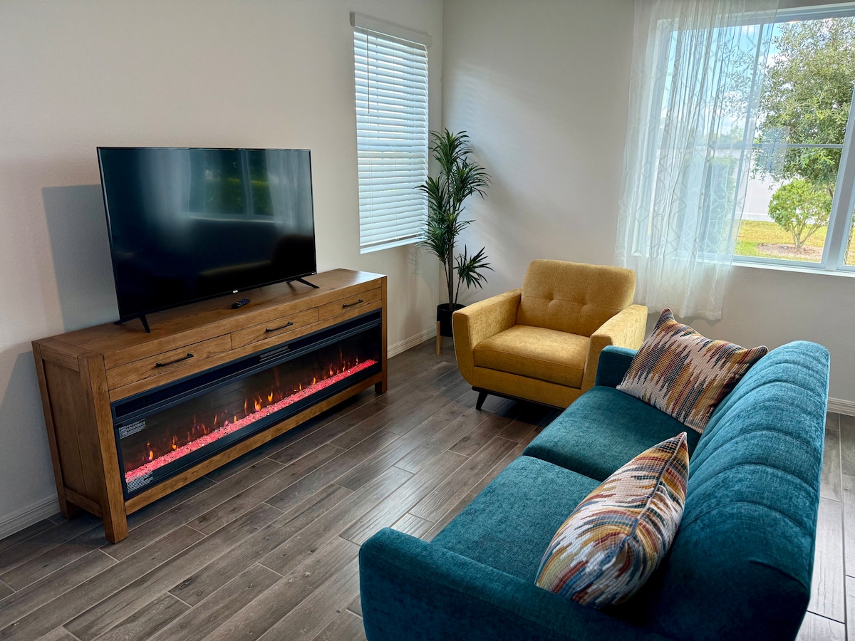 NEWLY BUILT private home. Enjoy a stylish experience with fully equipped kitchen and EVERYTHING brand new. Sleeps up to 6 in 3bed/2bath. Includes 1 KING and 4 Twin beds with a tv in each room. Enjoy the arcade game and lounge in the relaxing open space. Connect to WiFi and enjoy the dedicated workspace. Safe & secure smart house in gated community. Access to resort style pools, sports courts & more. Minutes from several entertainment spots including Disney, shopping & restaurants all close by.