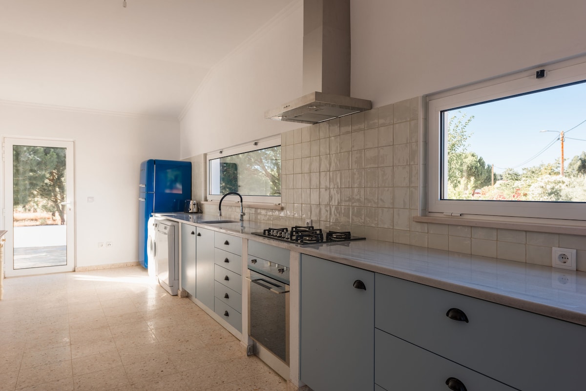 → Portuguese family house located near Abrantes perfect for retreats → 6 bedrooms (1 en-suite) & 2 bathrooms → 4 Super King Size beds (200x200) → 1 King Size bed (180x200) in the library/office → 1 Queen Size bed (160x200) → 10-min drive from Abrantes center Enjoy: → Free parking → Air Conditioning in the living room, kitchen and en-suite → Well Equipped Family Kitchen Diner → Quiet and very safe property → Massive outdoor area with swimming pool, tennis court, access to the river
