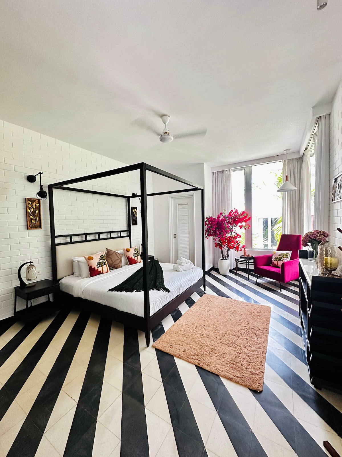 Set amidst Camurlim’s greenery, The Juliet Balcony offers a peaceful luxury escape. With lush landscaped gardens, a shimmering private pool, and breezy verandas, this villa is perfect for travelers who crave tranquility while staying close to Anjuna, Vagator, and Morjim. 4 spacious bedrooms | Nature-Inspired décor Private pool with garden-side loungers Verandas & outdoor sit-outs for morning coffee Cozy living spaces with warm, earthy tones Fully equipped kitchen & in-villa dining options