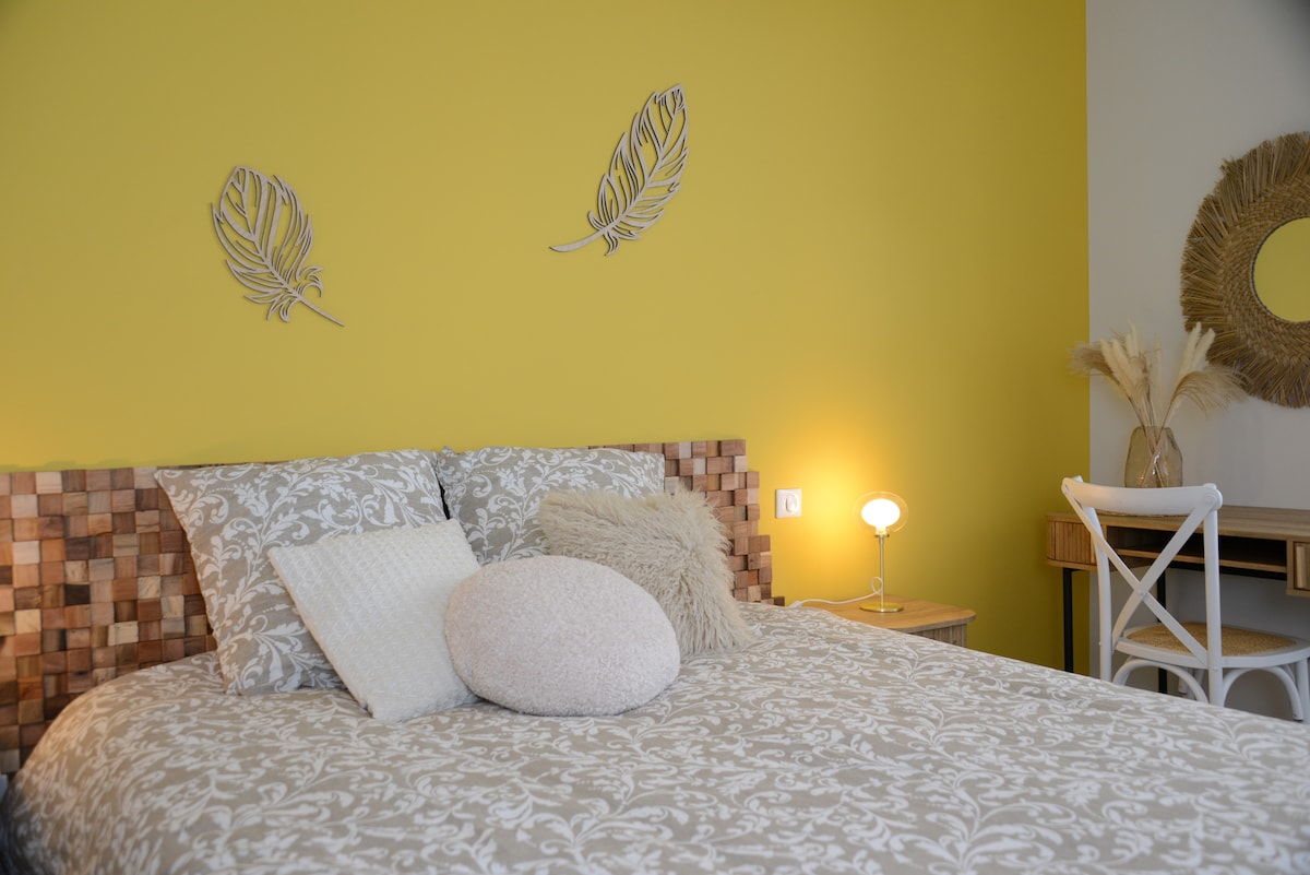 House with one floor, adjoining our home, completely refurbished and totally independent. Reversible air conditioning on both levels. Entrance to bedroom and upstairs kitchen + very bright living room. Watch out for the stairs! home equipped with a TV and fiber optic internet. Double bed for 1 or 2 people, no sleeping on the sofa bed