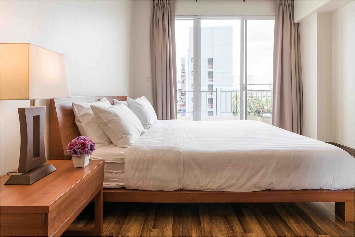 A spacious entire apartment with private bath, kitchenette, living/dining, 1 bedroom with designated working area, and balcony. Enjoy the wide windows for uninterrupted views and plenty of sunlight, increasing airiness for a more relaxing stay. Enjoy all the conveniences of city-life, including: - 5 min to BTS Asok, MRT Sukhumvit - 5 min to Terminal 21, Emporium/Emquartier and Benjasiri Park - 1 min to 7-11 convenient store - Lots of street food, cafe and taxi/bikes