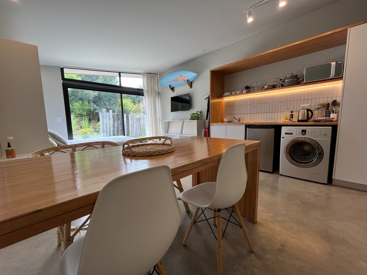Casa Geo is a conscious home in a quiet area of Chapadmalal, with beautiful stream views and unique sunsets, just three blocks from Cruz del Sur and Paradise beaches. Built with natural materials and bioconstruction, it offers modern comfort, natural temperature regulation, a green roof and solar hot water. Ideal for disconnecting and enjoying nature at a slower pace.