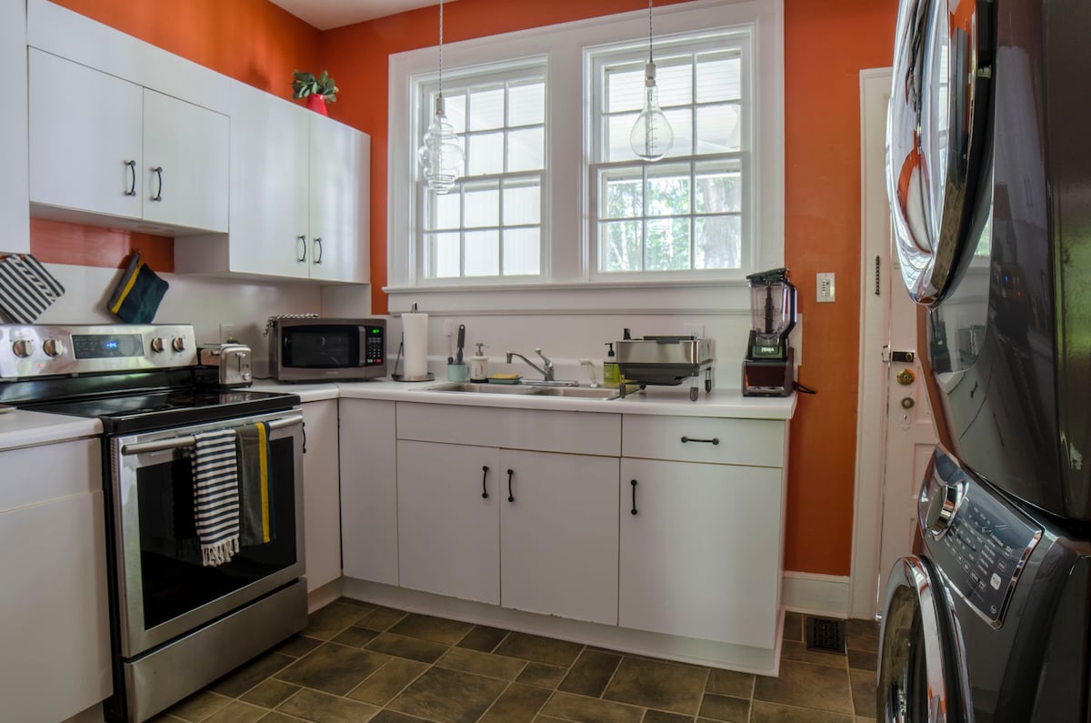 Escape to Clayton's Place, a restored 1910 lake-view mill house perfect for 4 guests. This pet-friendly retreat features 2 bedrooms (king, bunks), a modern kitchen, a dedicated workspace with fast Wi-Fi, and a large fenced yard. Enjoy serene mornings on the porch, evenings by the fire pit, and the convenience of an on-site EV charger. A peaceful, historic getaway just minutes from Mebane, Burlington, and Elon University.