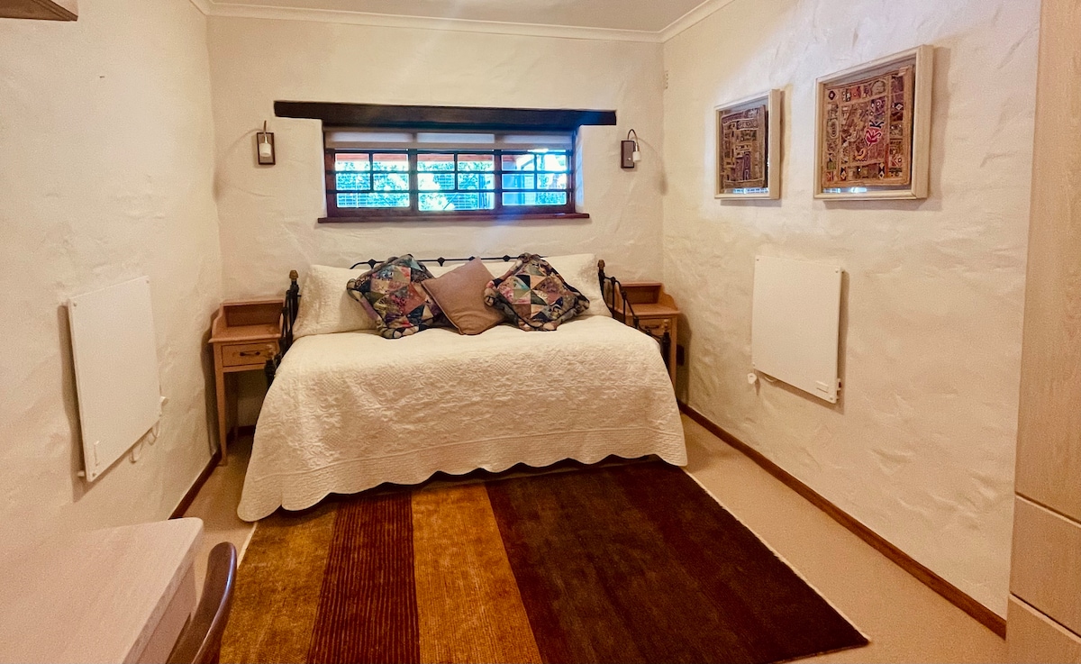 Please note that our neighbours are currently building so there may be noise disturbance. Price has been adjusted accordingly! Completely separate, private suite with ample parking on a 5-acre smallholding in Noordhoek. Original wood flooring, queen XL bed with Egyptian-cotton bedlinen, smart TV, fridge, microwave, gas cooker and automatic coffee machine, desk and wifi plus a private, sunny courtyard with firepit. The sizeable en-suite bathroom has a cast-iron bath and large shower.