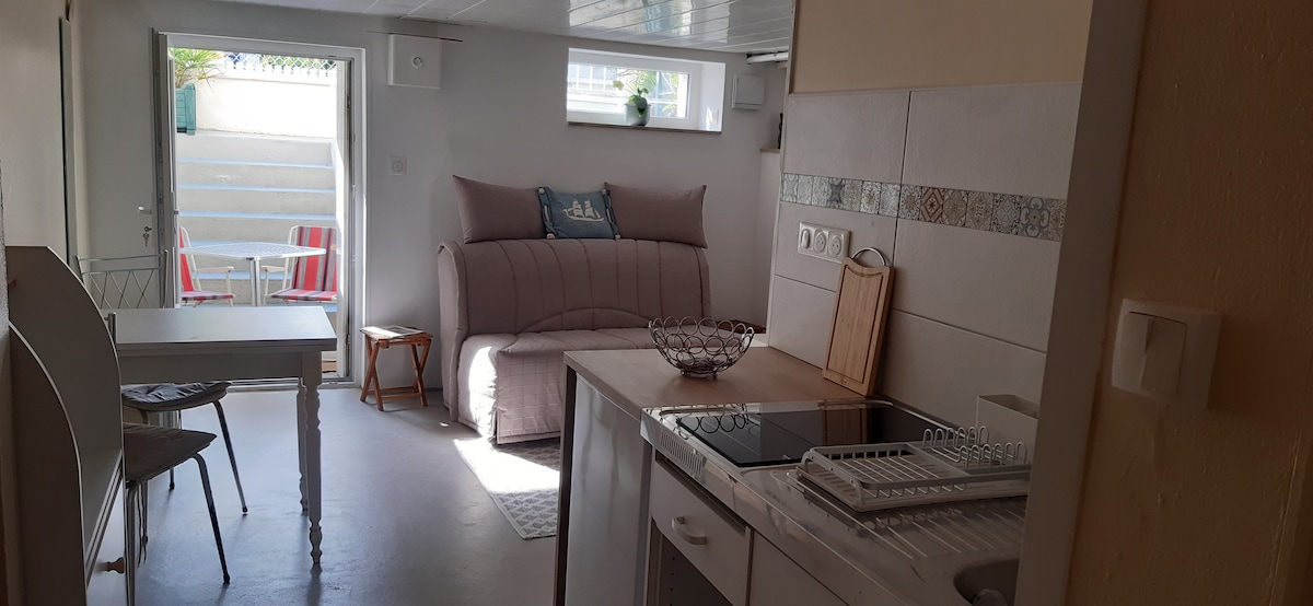In a detached house, after going down a few steps, Marie Jo and Bernard welcome you in a fully renovated two-room south-facing three-star referenced apartment. Small garden available with barbecue. Linens and towels included, bed made. Access to the sea and shops on foot. The rental is for a minimum of four nights except July, August. Non-smoking rental, pets not allowed.