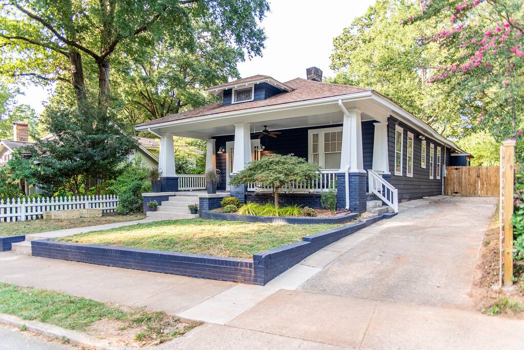 This cozy home is centrally located minutes away from Charlotte’s best attractions, and provides a private outdoor space. Enjoy the electric fireplace, ambient smart lighting, outdoor TV, and other premium features! The house’s interior has been beautifully finished with chic designer touches, luxurious memory foam mattresses, and all of the necessities for a blissful stay! The large trees, and fully-enclosed private yard provide serenity and nature rarely found in urban Charlotte.