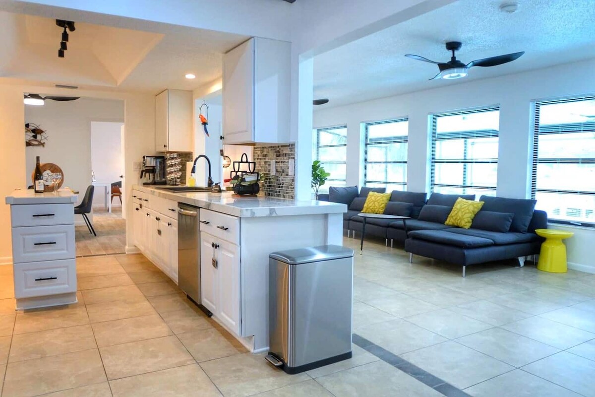 Complimentary golf cart INCLUDED. With a short stroll to warm sand and crystal waters of Englewood Beach. With all the the modern comforts in place all you have to do is relax on your short stay or extended visit. Updated 2/2 main house and 1/1 Casita with a private entrance. Walk right out the front door to the new expansive pool patio featuring a saltwater heated pool, outdoor kitchen and plenty of furniture for spending time soaking in the warm Florida sun!