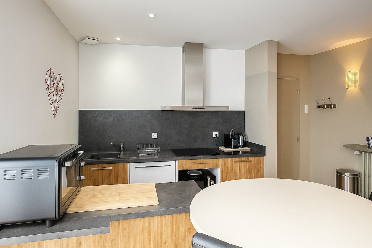 Welcome to La Porte Enchantée, a bright apartment in the heart of the historic centre of Chartres. You will enjoy a quiet and comfortable place, carefully decorated. From the living room, the view of the city's rooftops and the cathedral offers a soothing setting, ideal for relaxing or working. Located in Porte Guillaume, the apartment allows you to reach the city centre on foot in a few minutes. Free shuttles at the foot of the building make it easy to get to the train station and the city center.