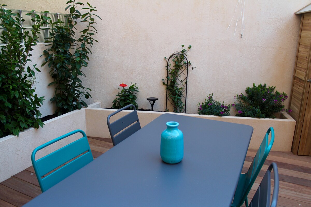 Appartment 2 rooms and beautiful terrace next to the sea between Catalans' beach(range) and the Vallon des Auffes. 30m2 with terrace of 20m2, completely renovated and equipped. You will be seduced by the location, close to the sea, to the Vieux-Port, tourist places and conveniences; by the contemporary decoration and especially by the peace and beautiful exotic wooden terrace.