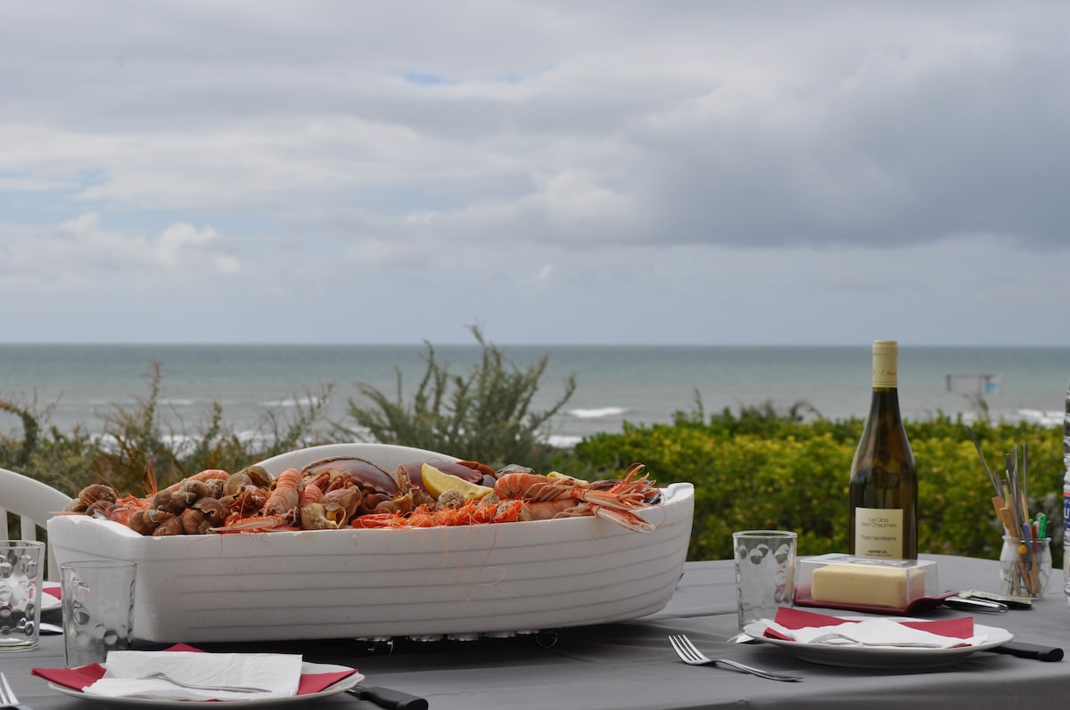 Fall in love with the charm of our corner of paradise "Le Charm'Sablais" with an amazing view of the bay of Les Sables d'Olonne: three kilometers of fine sand and a south-facing bay, the main beach of Les Sables d'Olonne and one of the most beautiful beaches in Europe. Originally from and in love with Les Sables d'Olonne, we would like to share with you our beautiful apartment with modern and neat decoration with sea view, jacuzzi and balcony terrace.