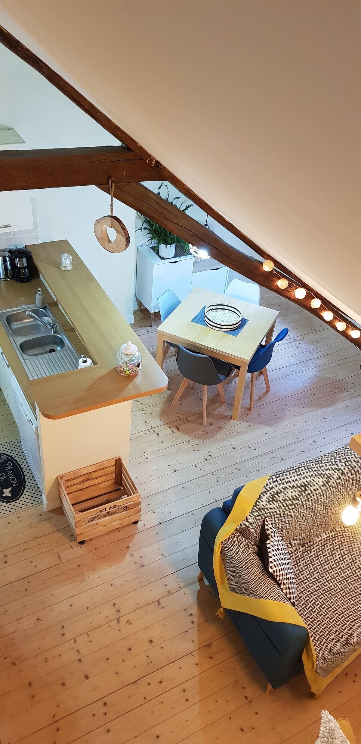 This chic and designer accommodation is located in the historic center of Amboise. Located less than a 5-minute walk from the Royal Castle, it is part of a 16th century residence with a French garden. Restaurants and shops are a 20 m walk away. The ideal location, with the private parking space is directly in front of the accommodation. Warning! The bedroom and the bathroom are upstairs, the toilet is on the ground floor. If it's a problem to go down to the toilet at night, please don't book.
