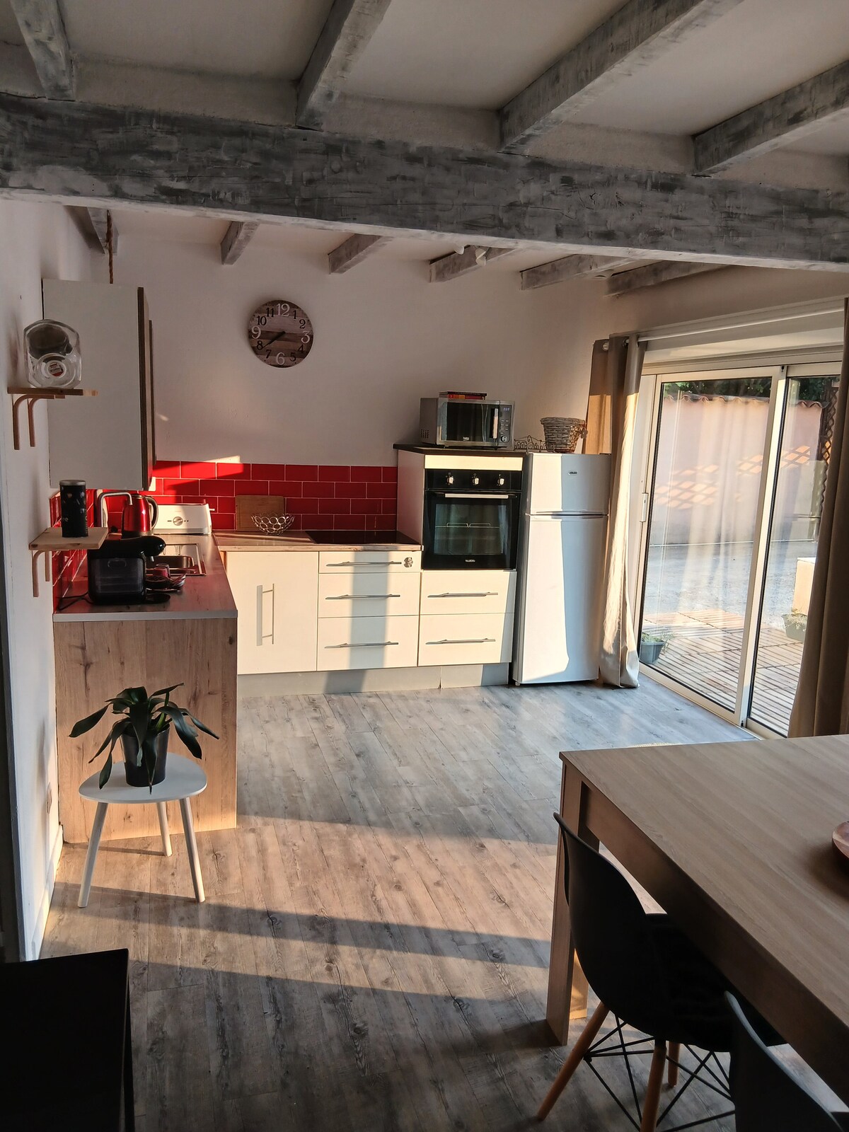 Typical air-conditioned Provençal apartment with the charm of terracotta tiles and its ceiling restored to the taste of the day. It offers a large living room with fitted kitchen. It can accommodate 5 people: A bedroom with bathroom composed of a bathtub and a mezzanine offering 2 beds secured with originality for the pleasure of children. It is located in the centre of the village, close to all amenities. This apartment will offer you a trip to Provence, with this unobstructed and bright view