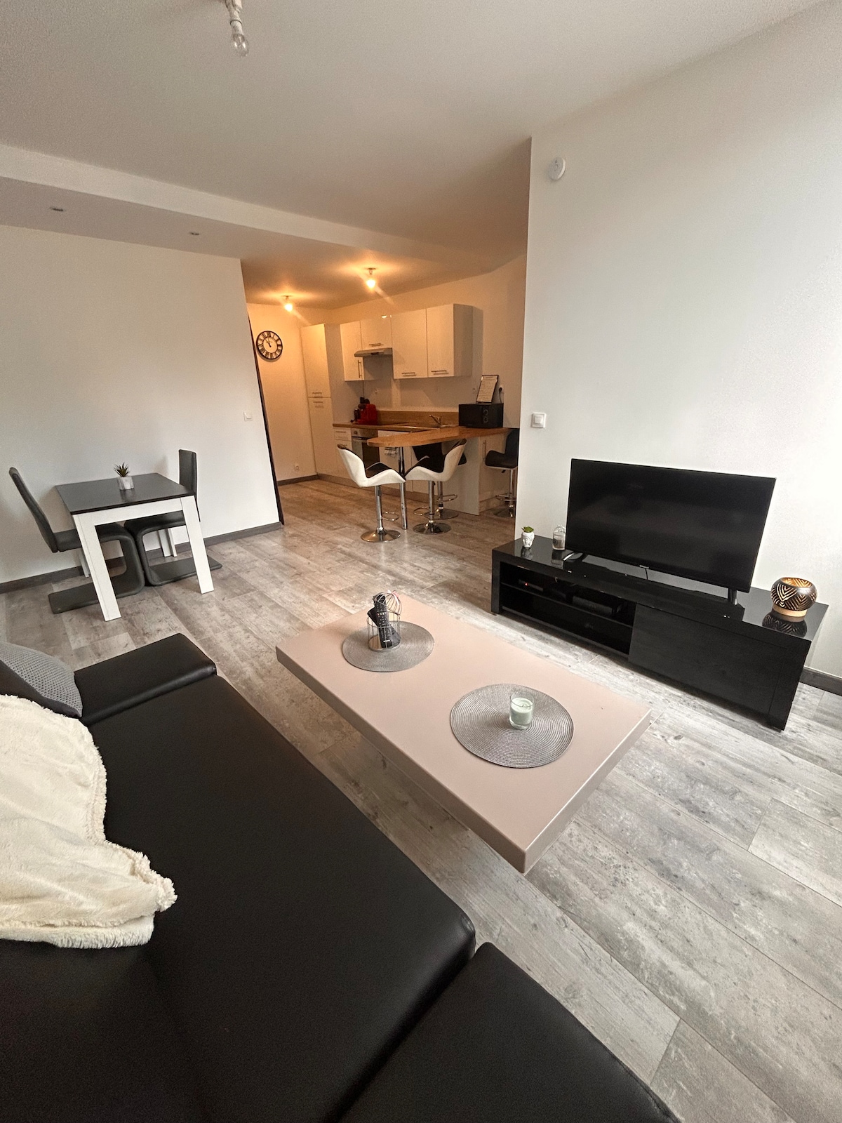Appart' le Kozi - Downtown - 5-min walk to train station Completely renovated, warm and close to all amenities. Offers 2 bedrooms with recent bedding (140 cm double bed) and each equipped with an individual bathroom. A living room with its fully equipped kitchen for your comfort. Parking spaces nearby. Beds made/bath towels provided. All you have to do is put your bags down. Self check-in by keybox. (A crib and high chair on request) FREE WIFI