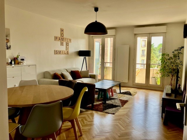 Quiet and cozy apartment with 2 bedrooms. Ideally located in Viroflay, 150 meters from the train station that serves the Eiffel Tower in 20 minutes, Montparnasse in 11 minutes and the Palace of Versailles in 5 minutes. The apartment consists of 2 large bedrooms overlooking the garden and a living room with equipped kitchen. The bedrooms are equipped with new bedding, shutters and curtains guarantee complete darkness. After the 3 steps to enter the building, the apartment is on one level Free parking on site.