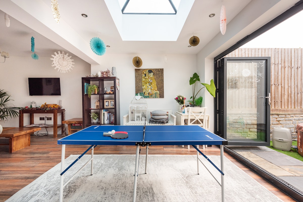 Stylish airbnb property in Cheddar, close to the breathtaking gorge, mysterious caves, historic Wells, iconic Glastonbury, and spooky Wookey Hole. Plenty of local pubs and restaurants serving up delicious food and drinks! Relax in the hot tub under the stars, or fire up the BBQ area for summer fun. Whether you're an adventure-seeker, foodie, or just looking for a relaxing getaway, this stylish retreat has everything you need for an unforgettable stay in Somerset.