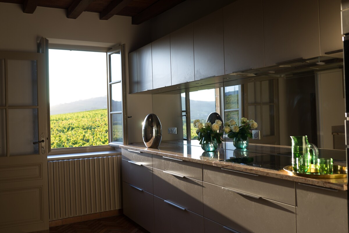 Pour un séjour apaisant au cœur du vignoble, nous proposons un appartement indépendant de caractère de 80m² situé au cœur du Château Lambert, demeure historique du village de Chénas, en Appellation Moulin-à-Vent. L'appartement donne sur la cour du cuvage et sur les vignes de Moulin-à-Vent en arrière-plan. Refait à neuf en 2021, cet appartement qui a accueilli au XIXème siècle l'école privée du village jouit d'une localisation parfaite pour découvrir le Beaujolais et ses crus.