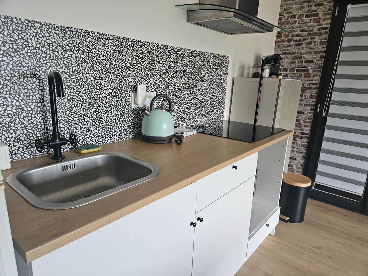● Brand new 45 m2 2-room apartment in small condominium Self ●check-in, very easy to access ● 1 free private parking space, if necessary possibility of having a 2nd ask me. ●1 double bed 160 and 1 sofa bed, the sofa bed house to accommodate 4 people max...... ●view of private garden quiet countryside● environment ●bathroom with bathtub dolce gusto coffee● machine ● if available, possibility to arrive before/leave later €8/hour, contact me before.