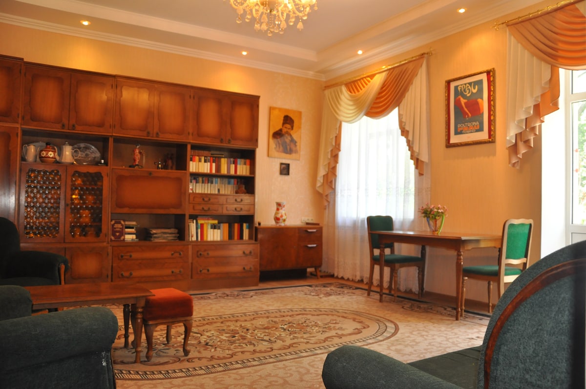 Location: 2 minutes walk from the main street Khreshchatyk. Interior:only natural materials are used. Antique furniture. Bed linen is made of natural cotton. The mattress is made of rubber and linen, cushions are made from corn fiber. Facilities: water purification, boiler, kettle, toaster, refrigerator, electric stove, WI-Fi, TV, hairdryer, heated floors in the bathroom. Parking. Additional services: iron, charging to phone. The possibility of renting a second adjacent room.