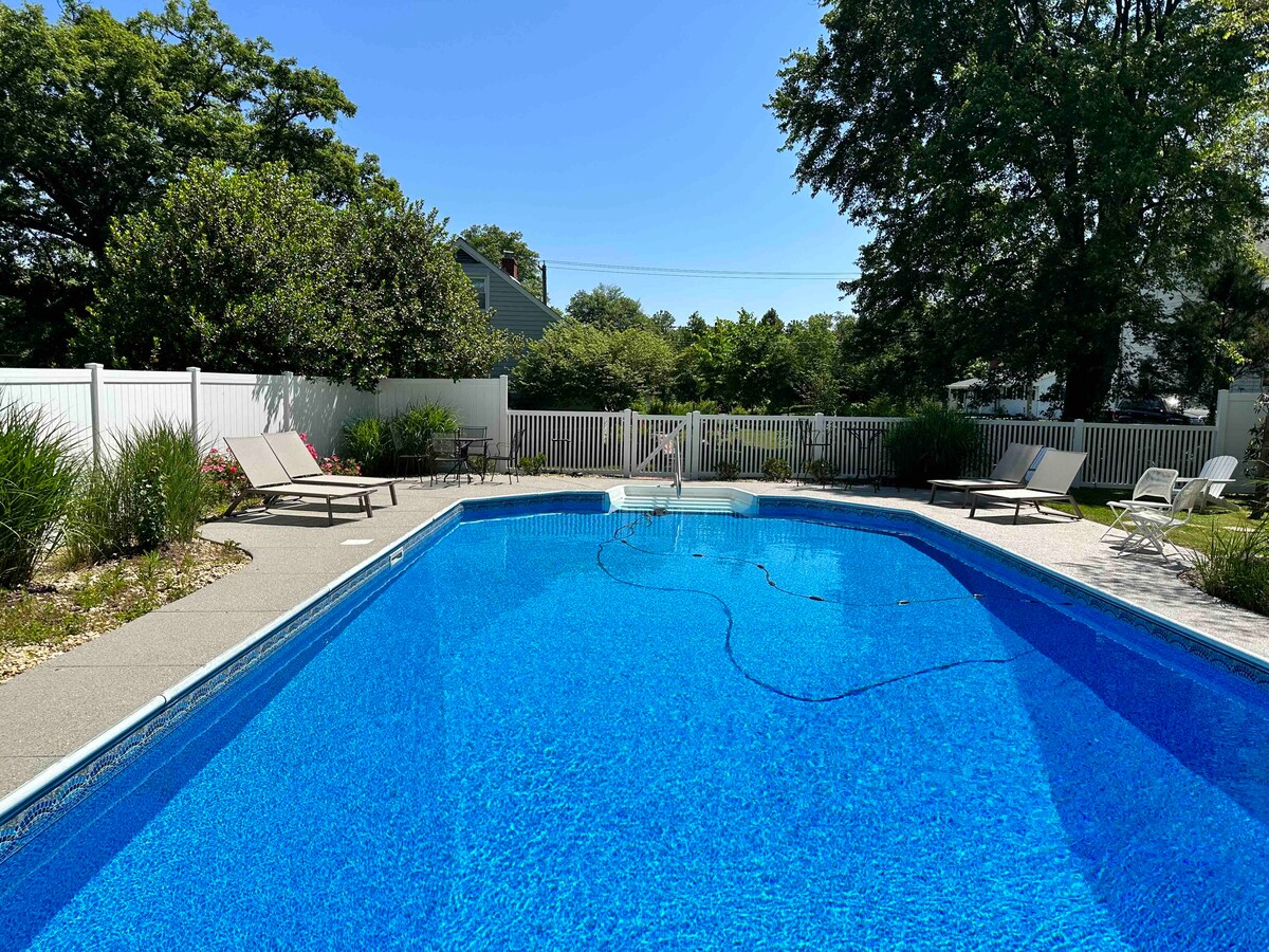 The Mint Cottage is new to the air bnb market. It is a 3 bedroom Cape Cod on .5 acre lot in Charming Chesapeake City! The 1st floor features a master bedroom suite with updated amenities, large living room and kitchen, PLUS a full hair and makeup station (great for bridal parties). The 2nd floor has two bedrooms- a queen and 2 twin beds. The house features 3 full baths.The back yard has a private swimming pool, fire pit and patio. Terrific location to walk to waterfront, shops, and restaurants!