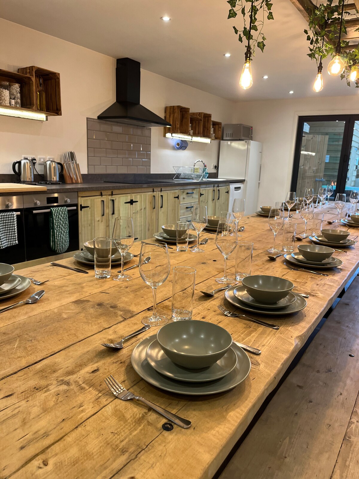 If you’re a group looking for somewhere all for yourselves, set in the gorgeous countryside of Shropshire, this offers the perfect place! Set on our small holding, a few pigs and sheep on site, a group can book all 4 huts, each sleeping a max of 4 people in king size bunk beds, complete with en-suite shower & toilet. Enjoy the group space, The Sheep Barn, where you can all hang out, some enjoying an undercover hot tub, while others lounge on the sofas & someone cooks some food in the kitchen!