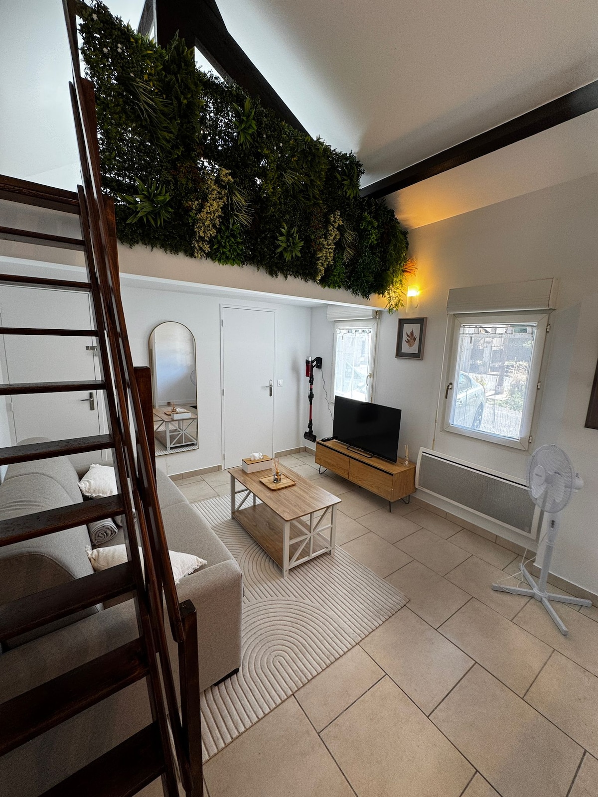 idéalement situé à proximité immédiate des commerces, restaurants et transports. Moderne, confortable et entièrement équipé, il est parfait pour un séjour en couple ou un déplacement professionnel, avec un accès autonome pour plus de tranquillité. Information importante Linge de lit inclus pour le canapé-lit. La mezzanine peut accueillir 1 à 2 personnes supplémentaires ; linge fourni sur demande (supplément à partir de 20 €, selon disponibilité et durée du séjour).