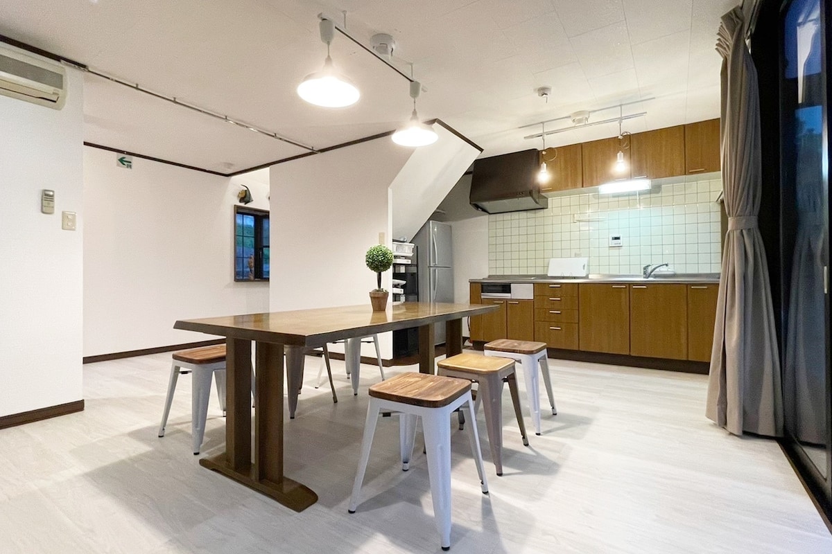 Katsuura is famous for its clear, beautiful sea, fishing, morning market, and gourmet food such as Katsuura tantan noodles. Located a 5-minute walk to the beach. There is also a sink and hot water shower in the garden, which is very convenient for guests who swim, surf, and fish. It is a 2LDK 83 ㎡ house with a very open, spacious space with high ceilings and a solid floor. It also has floor mats and children's chairs that are great for small children. Panasonic luxury massage chairs are free. The easy-to-use face-to-face kitchen has enough space for a large number of people to cook. Fully equipped with convenient furniture, appliances, and dishes to make your stay comfortable even for long stays. With large bedding, 2 families of 3-4 people can stay comfortably. In addition, it is an accommodation that can be used for a variety of purposes, such as work colleagues for workation purposes, quiet time with family, a small trip with friends, and a group of close friends and family. Parking available for 2 vehicles. There is also an outlet where you can charge your electric vehicle. The nearest bar is a 2-minute walk. Katsuura Station is within walking distance, and a convenience store is also within a 10-minute walk. There is a folding bicycle. Please ask us about chiropractic, osteopathic, and stretch massage options.