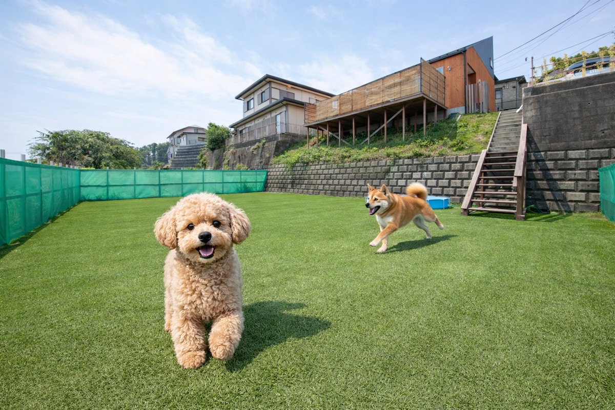 A special weekend stay in a private villa surrounded by nature.Surrounded by a quiet forest and a large lawn, a variety of experiences await, including a private sauna, outdoor air bath, BBQ, outdoor cinema, and a dog run of over 200㎡.It is ideal for family trips and gatherings with friends, with a specification that allows you to spend time with your dog with peace of mind.You can freely use the large living room, kitchen and dining room, and in the evening you can enjoy the best of the outdoors, such as a campfire or watching a movie while gazing at the starry sky.The Kujukuri coast is also about 15 minutes away by car, so you can enjoy nature walks and playing in the sea.It is about 1 hour and 30 minutes from Tokyo and has good access, and you can relax both physically and mentally away from the hustle and bustle of everyday life.The spacious interior space can accommodate up to 8 guests, and is equipped with comfortable furniture, beds and facilities, and is suitable for long-term stays.Enjoy a special time that can only be enjoyed at Booyah Sauna Kujukuri Base, combining extraordinary experiences with the comfort of hotel quality.