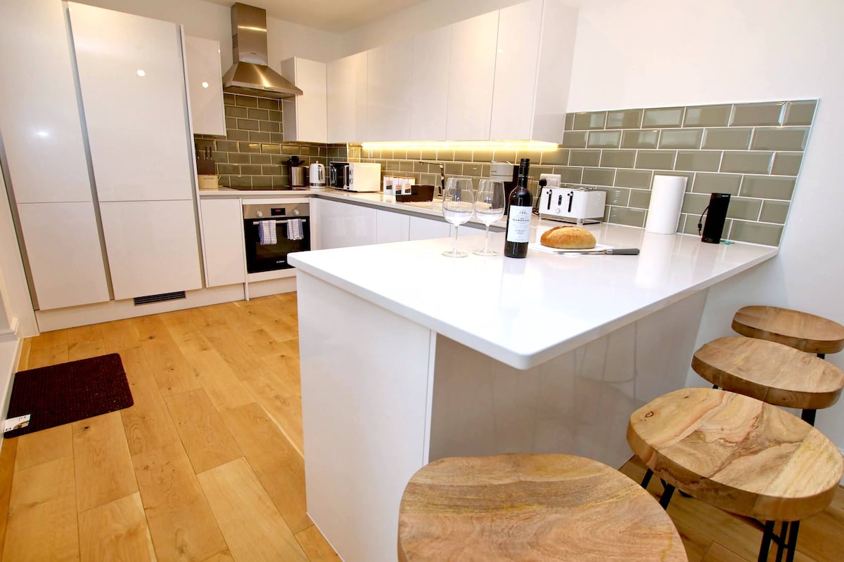 Jubilee House is a luxury, light and stylish three bedroom house, one minute's walk from the city walls and five minutes’ walk from Chichester's great shops, Festival Theatre, parks and restaurants. Ideal for older families and small groups. Although central, the house is pleasantly situated in a quiet cul-de-sac, with off-street parking for 2 cars. Mature, south facing garden, ideal to relax in after exploring the local beaches and the South Downs.