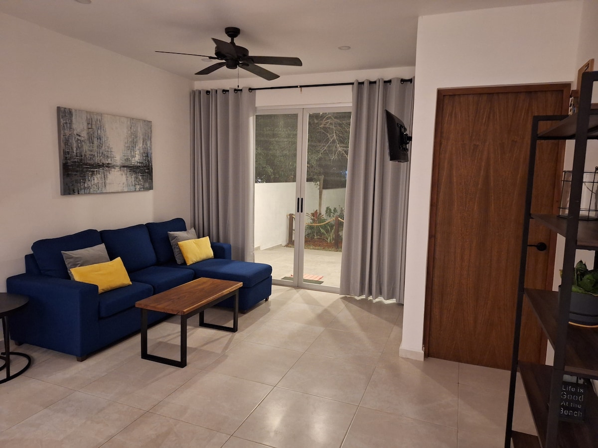 Two-bedroom apartment in the 'Playa Chacá' subdivision. Ideal for families or groups of friends. Well-equipped kitchen, comfortable living room, 50 mb/s Wi-Fi, washer/dryer... and yes, a balcony with an ocean view! > A few steps to the beach >10 minutes by bus to downtown Progreso. Shared services: -25-meter lap pool. -Rooftop terrace that offers a barbecue area with panoramic views. - A gated community with 24/7 security.