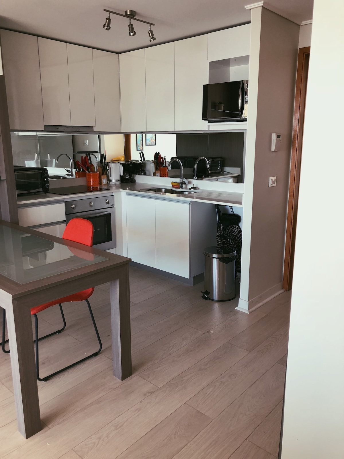 Elegant 2-bed/2-bath flat in Las Condes, ideal for up to 6 guests. It offers a combination of location, comfort and facilities, with an enclosed terrace with a screen, mountain views, air conditioning, central heating, a washer-dryer, a dishwasher, Wi-Fi and parking. Just a short walk from Mall Parque Arauco and Clínica Alemana. Ideal for families: children's bath, high chair, pushchair and car seat. The building features a cold pool, a heated pool, a sauna, a gym and a meeting room.