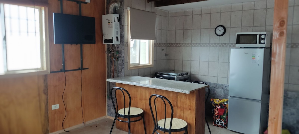 Ideal for 4 people,one bedroom with two beds and another bedroom with a 2-plaza bed. 1-bathroom and small kitchenette . It has a camping, microwave, kettle, mini fridge, with all the preparation for cooking and serving . It has public transport on the same street and supermarket one block away. It also consists of 1 TV with Cable and WiFi throughout the cabin. It also has private parking to secure the vehicle on the patio.