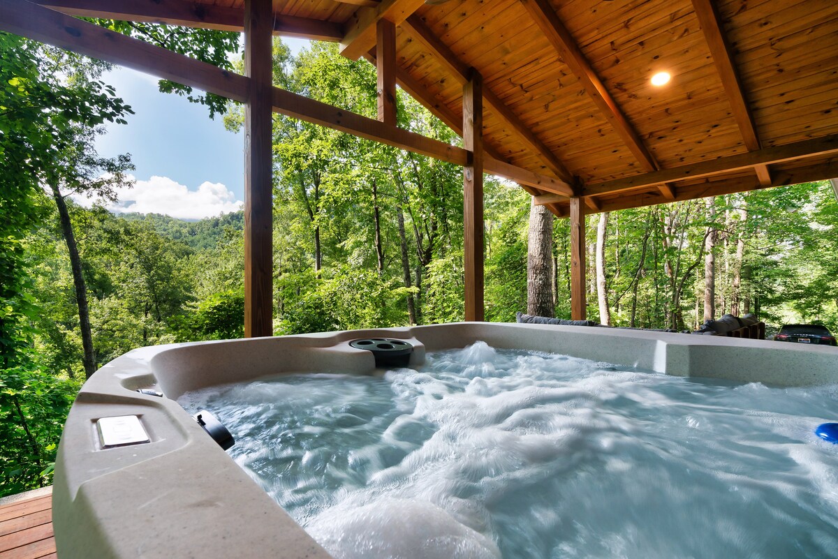 Luxury Cabin Roof Top with View, Sauna & Hot Tub!