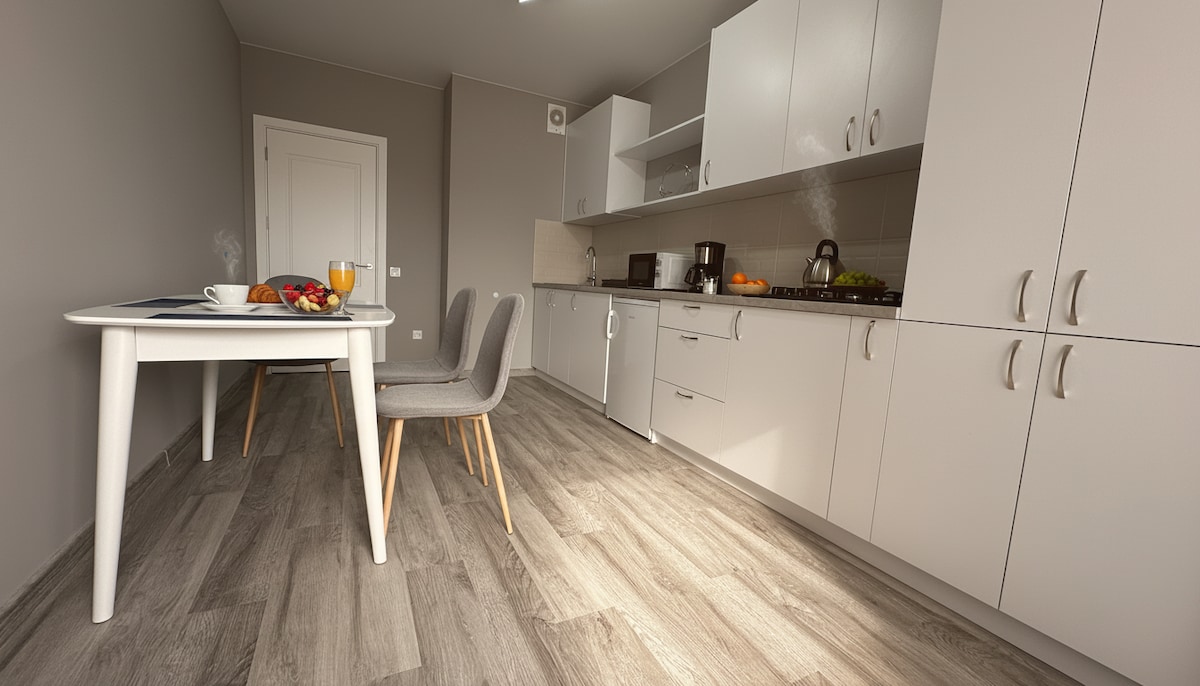 Наш уютный апартамент расположен в парковой зоне, всего в нескольких шагах от озера. Просторное жилье предлагает отдельную спальню и уютную гостиную, идеально подходящую для отдыха после насыщенного дня. Насладитесь утренним кофе с видом на парк или прогуляйтесь по обширной природной территории вокруг озера. Мы предоставляем все необходимое для комфортного проживания, включая полностью оборудованную кухню, бесплатный Wi-Fi и удобное расположение недалеко от центра. Добро пожаловать!