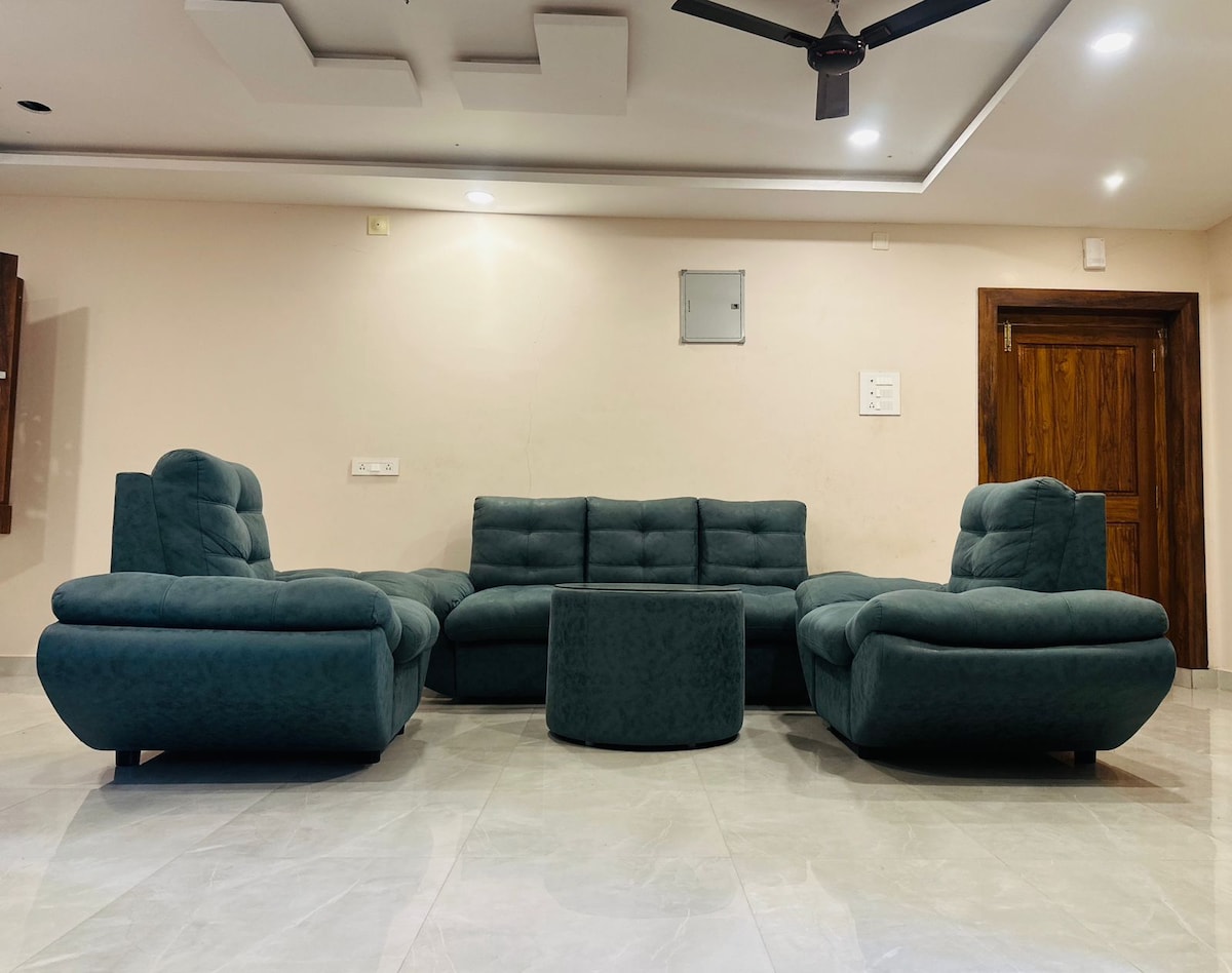 Relax in this calm & Enjoy a stylish experience at this centrally located place. Bedroom is equipped with a new king-size bed & Carrier AC for comfort. Indian Bathroom with Geysers for Hot Shower 1 Lobby A spacious lobby area for relaxation and socializing. Ample parking space that can accommodate 10 SUV cars Play Area for Kids Badminton court. Suitable for hosting events. 90 Feet Road Sri Govindaraja Swamy TEMPLE: 2.2 KM RAILWAY STATION: 1.5 KM VISHNUNIVASAM: 1 KM TIRUPATI INT AIRPORT: 19 K.M